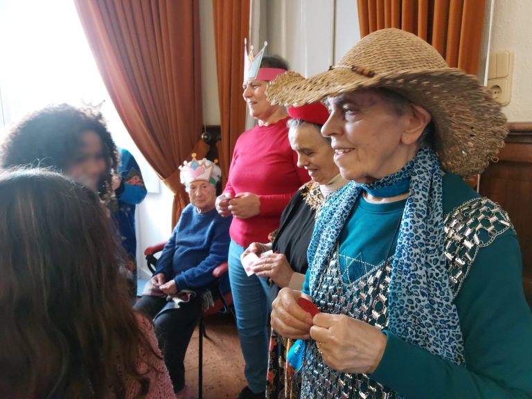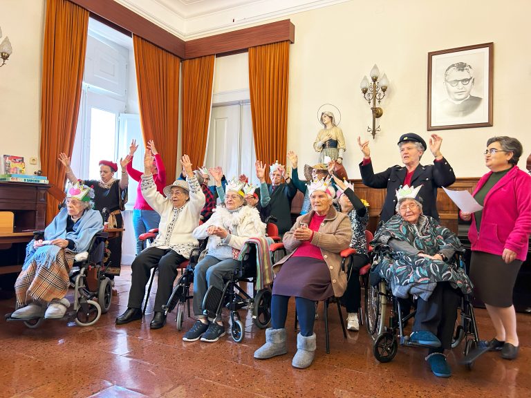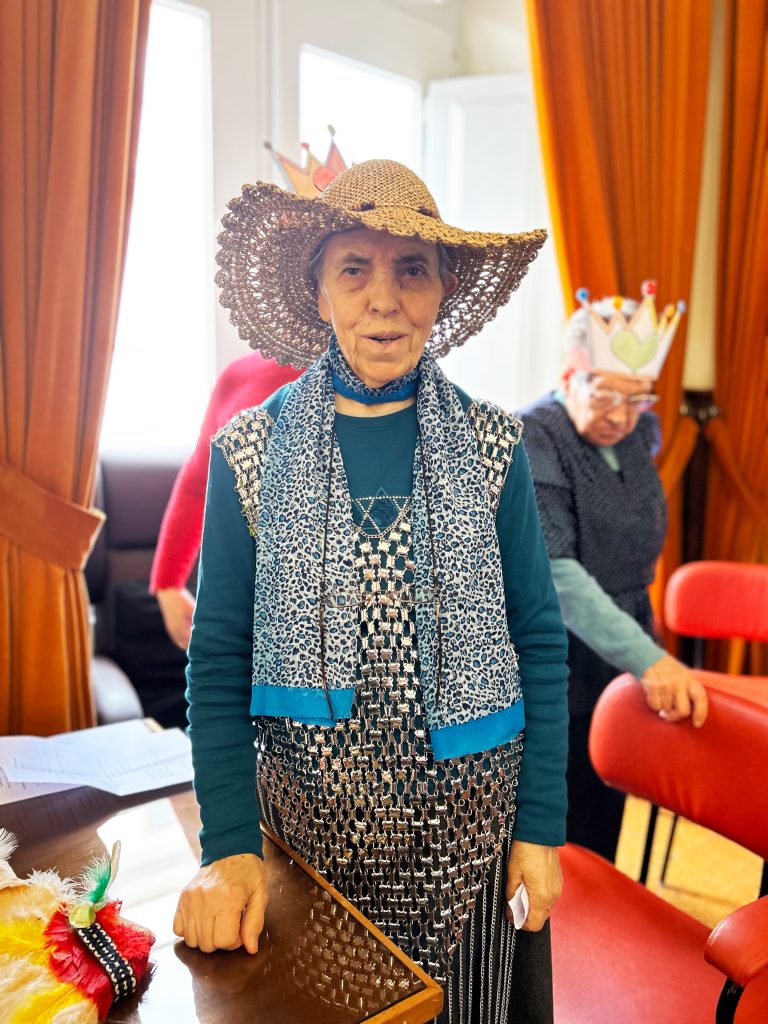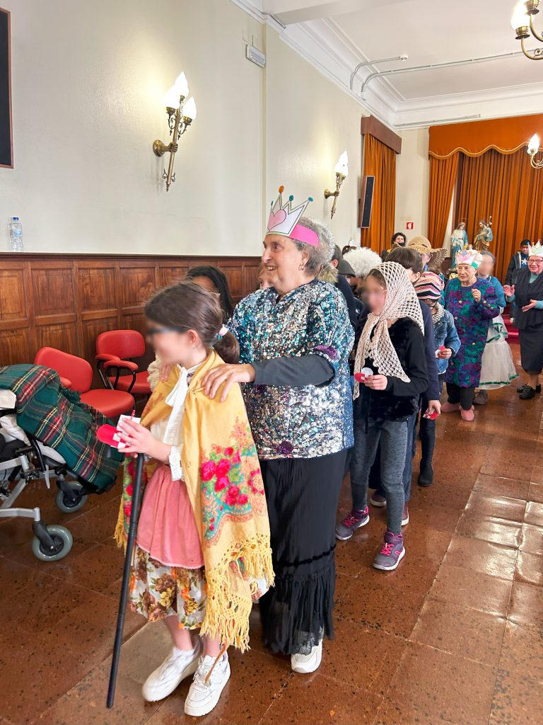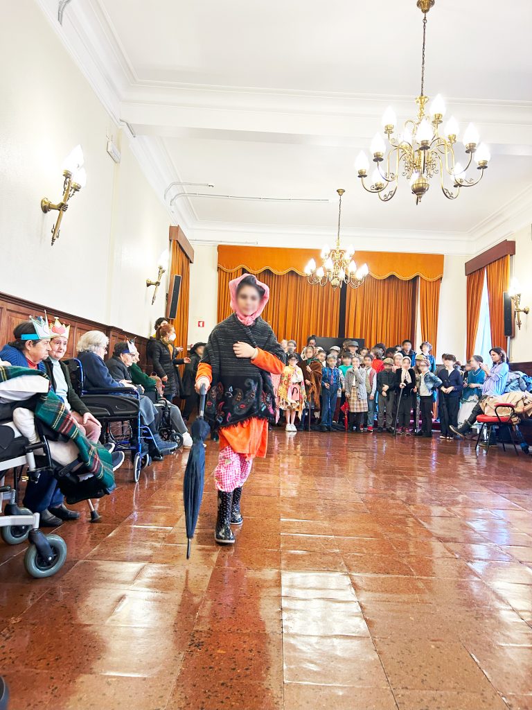 Em dias de Carnaval, os mais pequenos fizeram a festa, partilhando algumas canções no salão polivalente da nossa Estrutura Residencial para Pessoas Idosas. Mascarados de pessoas mais velhas, desfilaram diante de pessoas que sabem melhor do que ninguém o que são dores nas costas, diminuição da visão, o que é ter de recorrer a algum objeto que sirva de bengala para apoiar nas dificuldades de locomoção, que sabem o que são cabelos brancos e roupas com um aprumo diferente daquilo que hoje é mais comum. Ao irem aos pequenos detalhes para aprimorar o disfarce ficaram sensibilizados para a fragilidade que pode surgir com o avançar da idade e para o acolhimento daquilo que vão sendo as modificações do nosso corpo ao longo do tempo. A brincar, a brincar, puderam pôr-se no lugar daqueles que visitavam e deu-se um verdadeiro ENCONTRO.