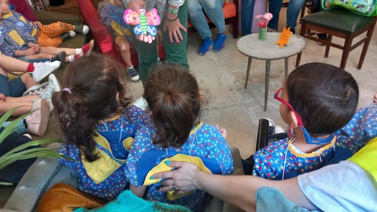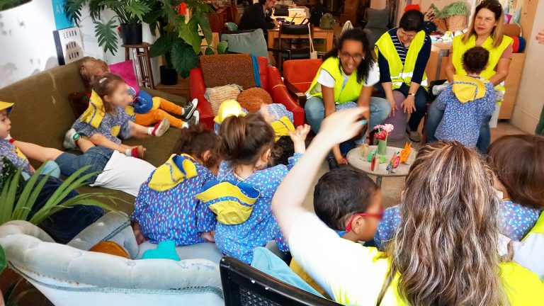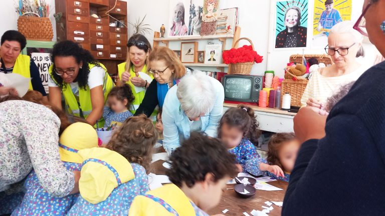 A Avó veio trabalhar, o convite desafio, foi aceite pela equipa e pelo grupo de crianças da sala dos dois anos da Creche OSZ Penha de França, mesmo antes de sabermos o que era e o que nos esperava. E foi uma descoberta maravilhosa. A primeira aventura destes pequeninos. Sair do espaço creche; andar a pé pelas ruas de Lisboa; descer e subir a calçado do Poço dos Mouros. Depois…bom depois foi uma delícia ouvia a “avó Graça” contar com mestria uma história,- não tivesse ela sido educadora de infância -; pintar, colar, numa mesa enorme; receber e dar carinho e retribuir também com uma peça confeccionada em grupo.