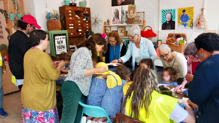 “A Avó veio trabalhar” é um espaço Criativo de aprendizagem, partilha e fortalecimento, que através da utilização de lavores tradicionais e do design aumenta o poder de intervenção dos seniores na nossa sociedade.