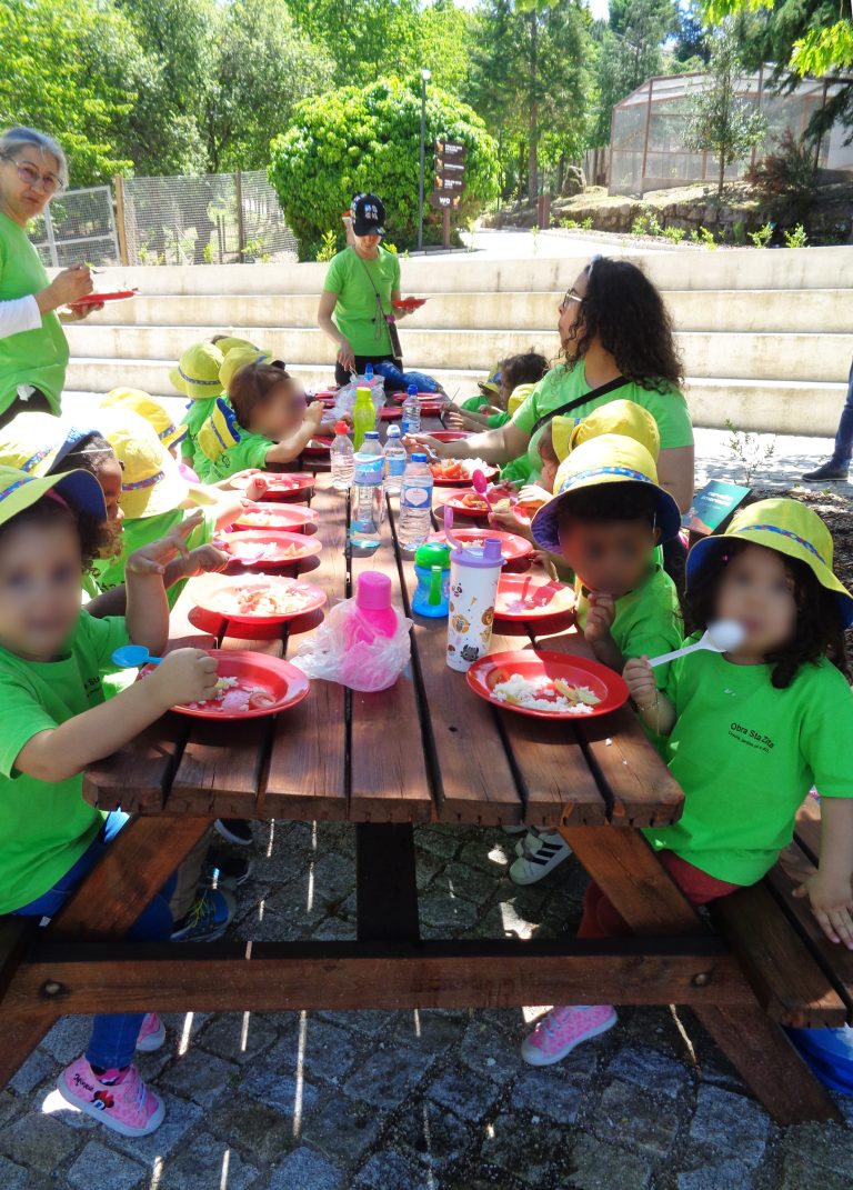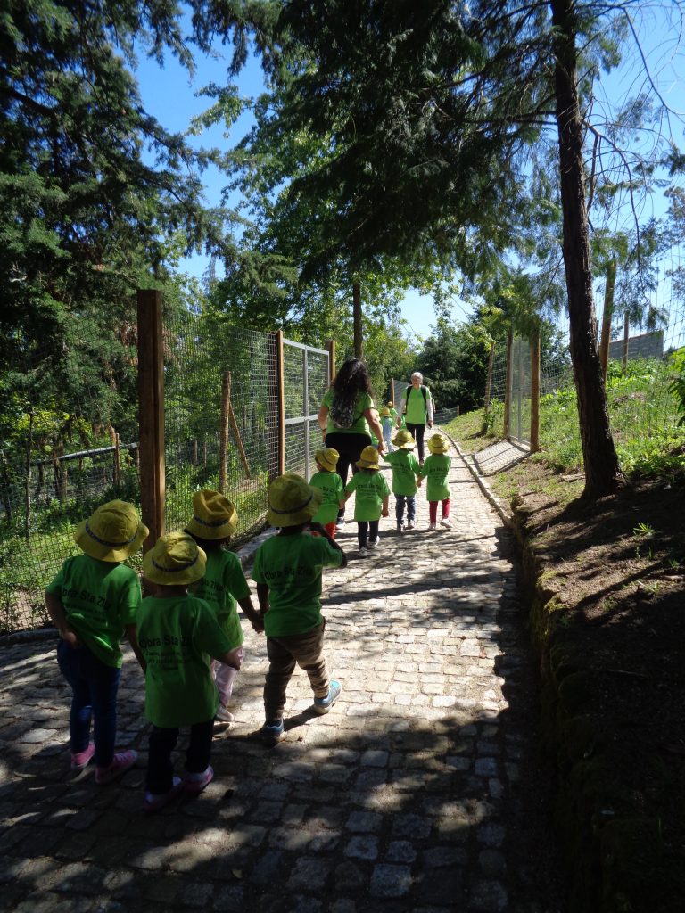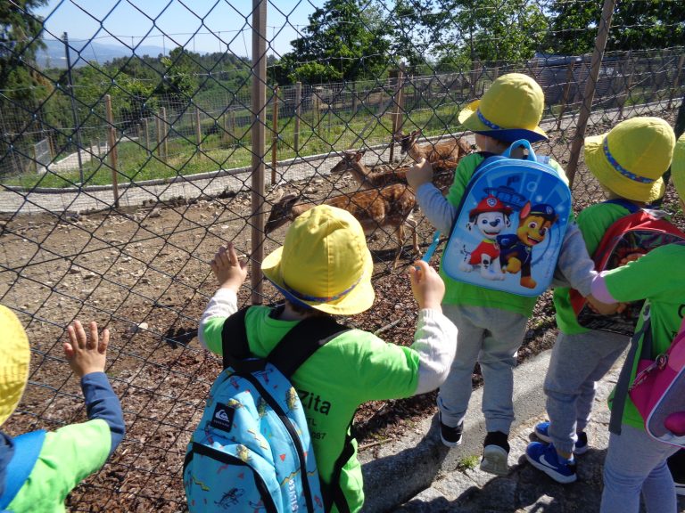 No Parque, as crianças manifestaram curiosidade em observar os animais: os veados que vieram para junto delas deixaram-se tocar; o javali “tão grande” que tomava banho numa poça de água lamacenta; a cegonha que comeu carne de coelho mesmo estando a ser observada em silêncio; os burros que zurraram felizes de ver tantas crianças; o vaidoso pavão que mostrou a sua cauda com vigor; os cães da Serra que vieram ao nosso encontro para que lhes fizessem festas; o ganso que grasnou parecendo um pouco zangado por as visitas perturbarem o seu descanso… as tartarugas, o bode, a cabra, o cavalo, o pónei, o carneiro e as ovelhas, o mocho, a coruja, a águia, os porquinhos-da-índia, os bambis.