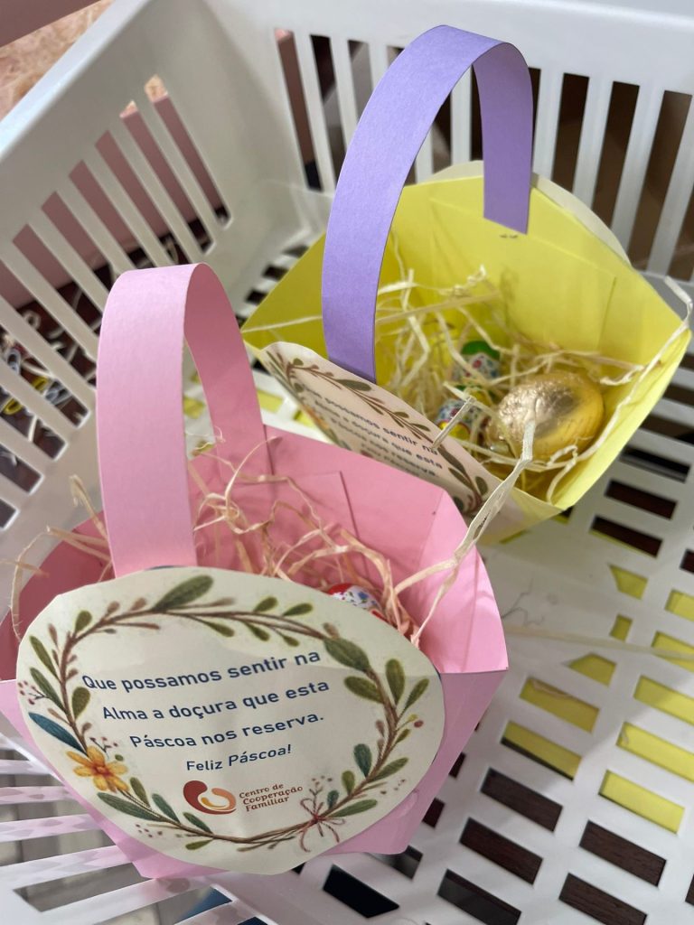 A época de Páscoa trouxe, ao Centro de Cooperação Familiar do Porto, um espírito de partilha, criatividade e solidariedade. Mãos empenhadas deram vida à elaboração de cestinhas decoradas, onde não faltaram cores alegres e mimos simbólicos.